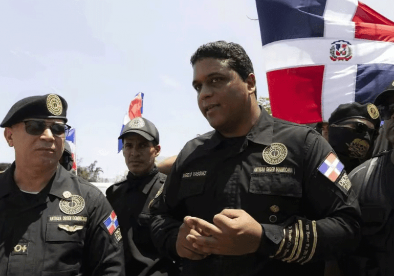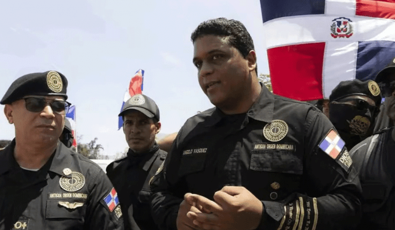El líder de la Antigua Orden Ángelo Vásquez, en una manifestación frente al Palacio Nacional, respondió este jueves a las críticas de Amnistía Internacional, sobre las medidas migratorias que ejecuta el gobierno de la República Dominicana.
