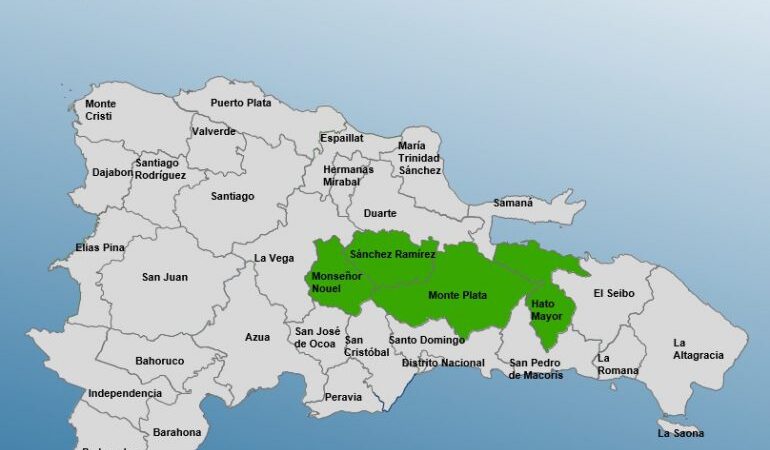 Las precipitaciones serán de mayor intensidad y frecuencia en la tarde hasta primeras horas de la noche sobre La Altagracia, La Romana, San Pedro de Macorís, el Gran Santo Domingo, El Seibo, Hato Mayor, Monte Plata, Sánchez Ramírez, Duarte, María Trinidad Sánchez,  Monseñor Nouel, La Vega, Santiago, Puerto Plata, San Juan, Elías Piña, entre otras.
