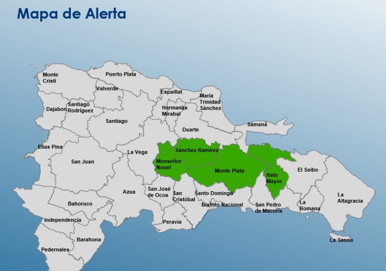 La Oficina Nacional de Meteorología (Onamet) prevé que el viento de componente este y una onda tropical incrementen las lluvias sobre el país este sábado, así que mantiene alertas meteorológicas en Monte Plata, Sánchez Ramírez, Hato Mayor y Monseñor Nouel por posibles inundaciones urbanas, crecidas de ríos, arroyos, cañadas, así como algunos deslizamientos de tierra.