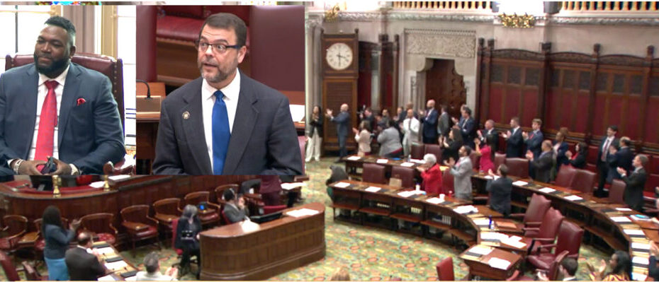 El miembro del Salón de la Fama del Béisbol David Ortiz fue honrado por el Senado del estado de Nueva York por su prolífica carrera y trabajo filantrópico.