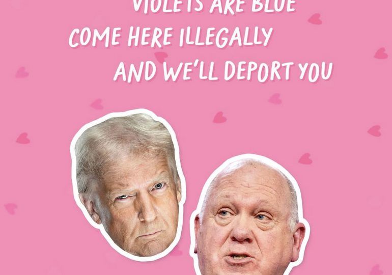 La felicitación de la Casa Blanca por San Valentín para los migrantes no tiene desperdicio: fondo rosa, corazoncitos, los primeros versos de un poema y el mensaje “ven aquí ilegalmente y te expulsaremos”.