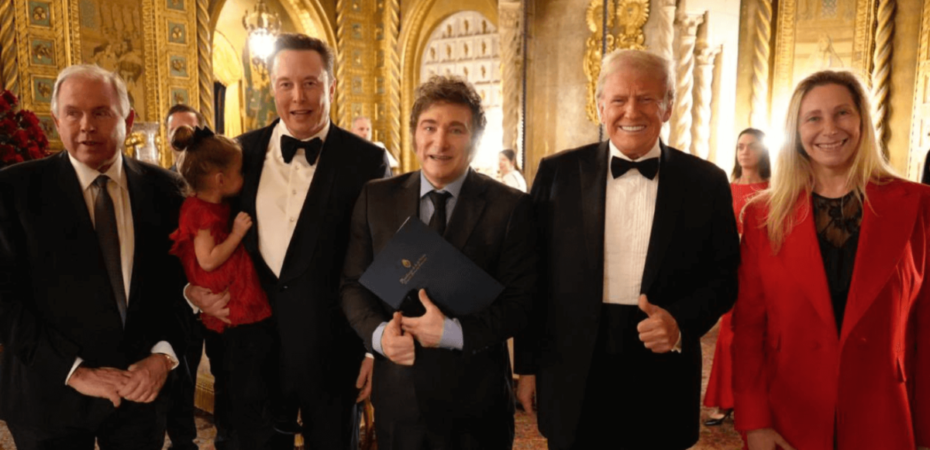 En la imagen también aparecen el empresario Elon Musk —que en el próximo gobierno de Estados Unidos encabezará un nuevo “Departamento de Eficiencia Gubernamental, según ha dicho Trump; Karina Milei, secretaria general de la Presidencia de Argentina y hermana del presidente Milei; y Gerardo Werthein, canciller del país sudamericano.