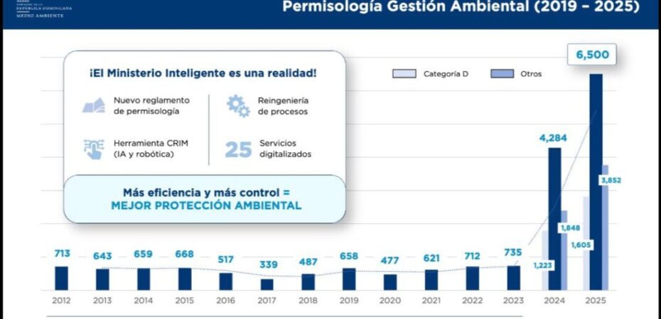 Ministerio de Medio Ambiente marcó un hito histórico en la gestión de autorizaciones ambientales, al pasar de 658 permisos emitidos en 2019 a más de 6,500 en 2025, reflejando una transformación profunda en la permisología ambiental del país.