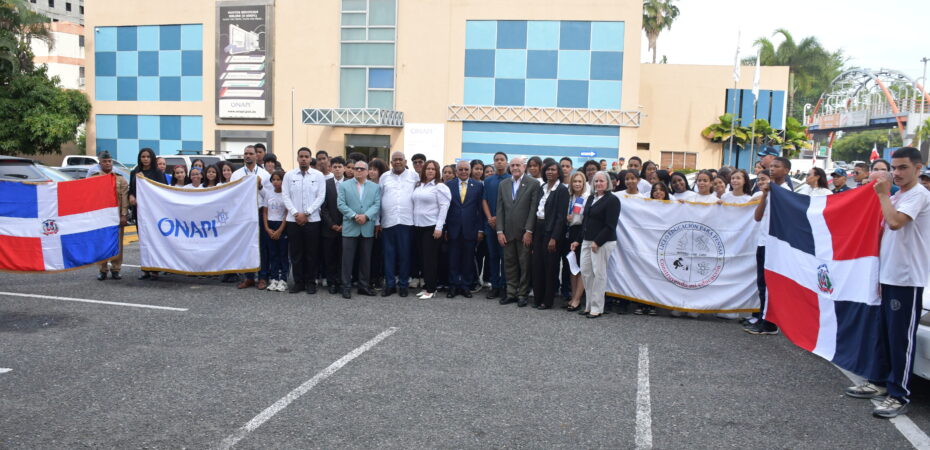 Santo Domingo, D.N – La Oficina Nacional de la Propiedad Industrial (ONAPI) realizó un acto solemne de izamiento de la bandera nacional, al conmemorarse los 182 años de su independencia, acompañado de un homenaje cívico con la participación de los estudiantes del Liceo Educación para Pensar, con el propósito de promover los valores nacionales y la educación cívica.