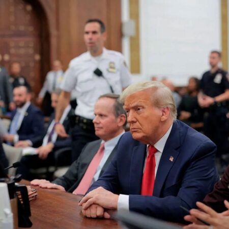 junio 11, 2024junio 11, 2024 La Redacción Trump es interrogado por un oficial antes de la lectura de la sentencia